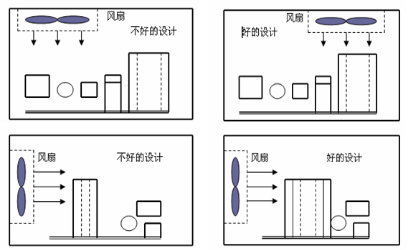 ◆ 對溫度較敏感的零件應(yīng)該靠近入風口,以保持較低的操作溫度。